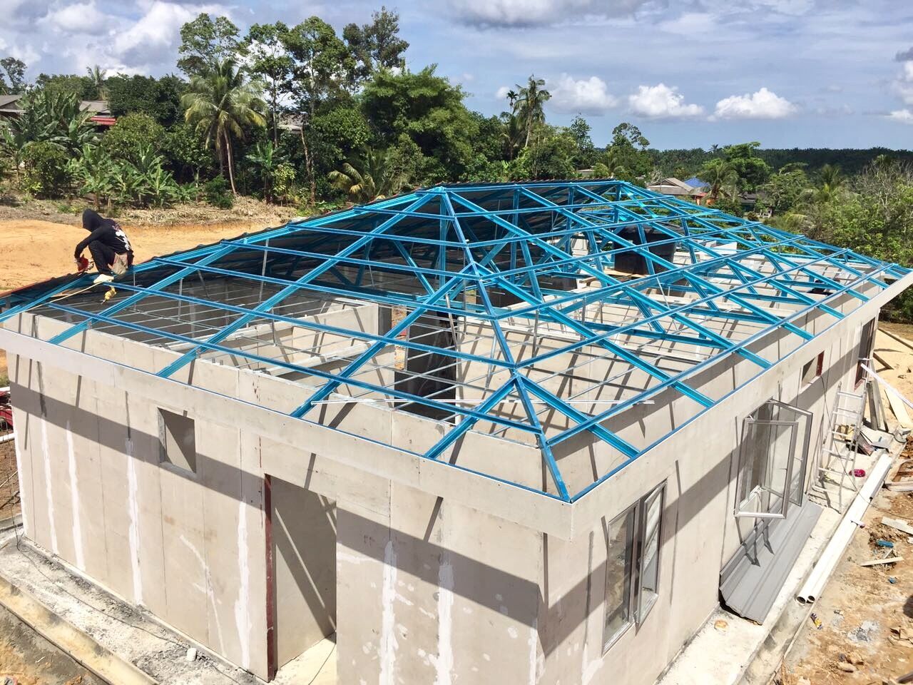 巨能轻钢结构住宅是以冷弯成型的薄壁型钢结构作为承重骨架,以轻型墙体材料作为围护结构所构成的居住类建筑,巨能板业研发销售并承接安装轻钢结构房屋安装工程。